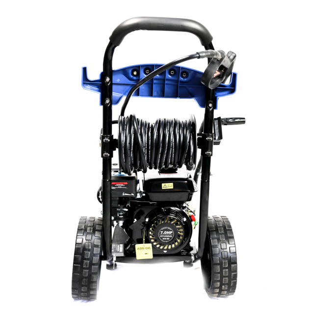 Rijden op benzine biedt de vrijheid om te reinigen van elektrische benodigdheden, en het is ook lichtgewicht en draagbaar, met inklapbare handvatten om deze hogedrukreiniger nog compacter te maken. Voor alles tot een grootschalig, middelzwaar huishoudelijk gebruik, zal deze machine u niet teleurstellen. Hij wordt geleverd met een 4-delige spuitmondset en een turbomondstuk met een maximale capaciteit van 3000 ppi - in staat om de schoontijd met 25% te verminderen Deze hogedrukreiniger is uitgerust met een hoogwaardige Axiale pomp, ontworpen om het hoofd te bieden aan de ontberingen van veeleisende schoonmaakwerkzaamheden waaraan veel standaardpompen niet konden voldoen. De bouwkwaliteit is extreem robuust en de wasmachine zelf heeft een afneembare handgreep die over de machine kan worden neergeklapt om een motorbuffer te vormen voor wanneer de machine wordt opgeslagen. hij beschikt ook over een zeep detectievat dat gevuld kan worden met detergent-vloeistof, die naar de waterstroom wordt gezogen wanneer u het juiste mondstuk gebruikt om uw schoonmaaktijd te verkorten. Het beschikt ook over een thermische overdrukklep die helpt om de temperatuur van de pomp te regelen om schade te voorkomen. Hij wordt geleverd met een slang van 20 meter.
