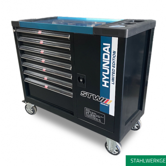 This STWXL workshop trolley has 7 ball-bearing drawers, 6 of which are filled with 295-piece tools.