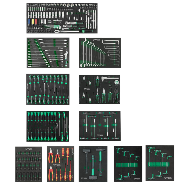 The SW10 tool trolley offers a complete solution for workshops, garages and professional handymen. With 13 sturdy drawers, 12 of which are filled with high-quality tools, this trolley ensures that all necessary materials are organised and immediately accessible.